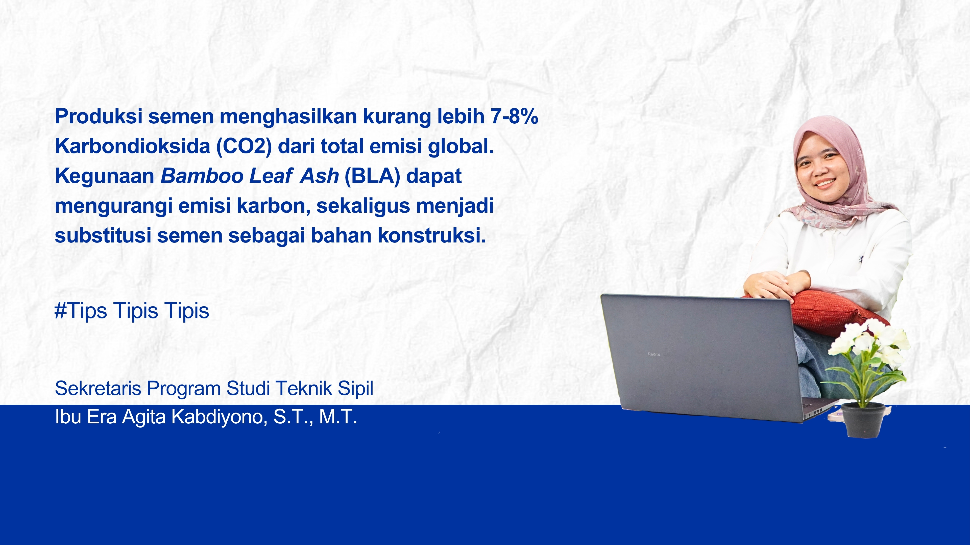 #TipsTipisTipis - Ibu Era Agita Kabdiyono: Memanfaatkan Material Ramah Lingkungan Bamboo Leaf Ash, untuk Memperbaiki Kekuatan Tanah - Instagram UNDIRA
